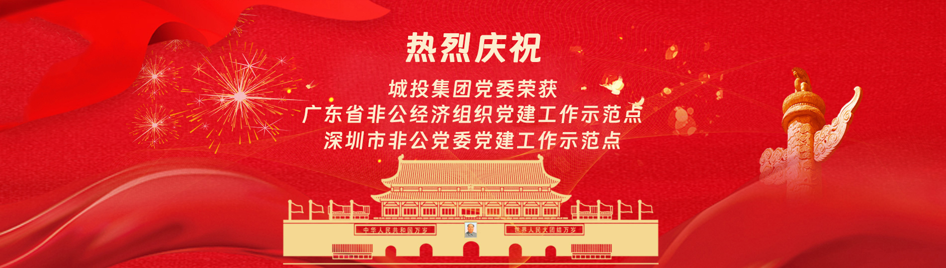 在上級黨委的正確領導下,在城投集團的大力支持下,集團黨委緊緊圍繞企業發展戰略,將黨建引領核心貫穿始終,以五心工程(即思政建設核心工程、經營發展中心工程、企業文化向心工程、黨建品牌匠心工程、服務基層愛心工程)為抓手,大膽探索,勇于突破和創新,不斷形成城投黨建特色,有效輸出城投實踐經驗,充分發揮紅色引擎作用,先后獲得深圳市非公黨委黨建工作示范點、深圳市兩新組織黨建工作示范點深圳市文明單位深圳市先進基層黨組織、廣東省非公有制經濟領域黨建工作示范點等榮譽稱號。